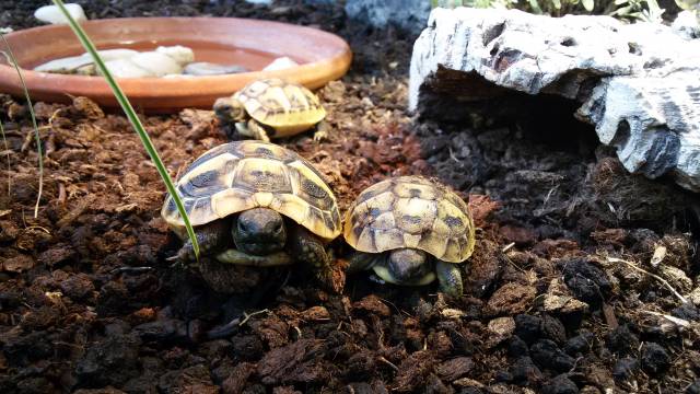 Allen Nachzuchten geht es bislang soweit gut. Auch die Schildkröte mit dem Zwilling hat alles gut überstanden. Die Bauchnähte wachsen gut zusammen und sind bei einigen schon fast komplett geschlossen. Ich hatte sie ja noch eine Weile unter Beobachtung gestellt, um zu sehen ob alle fressen und sich so verhalten wie sie es sollen. Da dies der Fall ist durften sie nach draußen ins Gehege zu ihren „großen“ Geschwistern aus dem Vorjahr. Jetzt sieht man auch nochmal wie viel die kleinen in einem Jahr gewachsen sind.